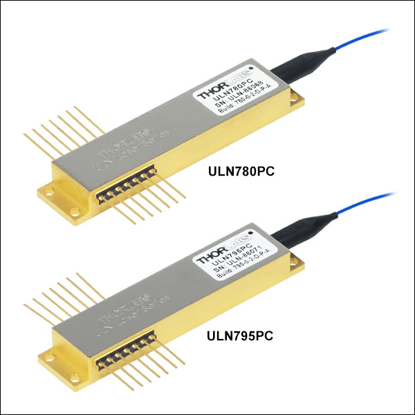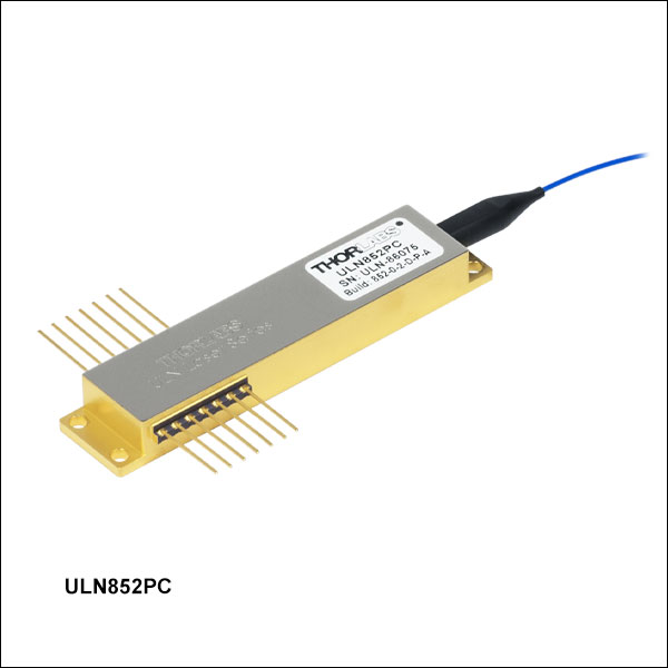 With their inherently narrow linewidth and low noise, these lasers are ideal for any application where minimizing the laser linewidth (and therefore, maximizing the coherence length) and its intensity noise is desired. The ULN laser diodes are ideal for applications such as optical sensing, generating optical carriers for RF-over-fiber or coherent optical communication systems in the C-band, vapor cell and cavity locking, neutral atom and ion-based quantum computing, Rydberg atom experiments, and wavemeter stabilization. They can be used for atomic cooling of rubidium (Item # ULN780PC, tuned to the Rb D2 transition, or Item # ULN795PC, tuned to the Rb D1 transition) or cesium (Item # ULN852PC, tuned to the Cs D2 transition).