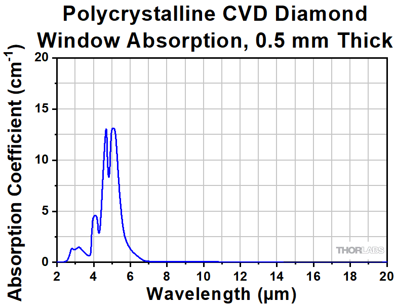 (posted 2023-08-30 15:38:18.957) the absorption spectrum you show for your diamond windows appears to be incorrect: https://www.thorlabs.com/newgrouppage9.cfm?objectgroup_id=15962&pn=WGM1005