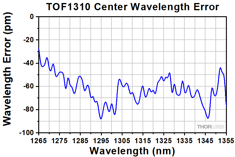Figure 3.4 The plot above shows the wavelength setting error over the entire tuning range for the TOF1310 bandpass filter.