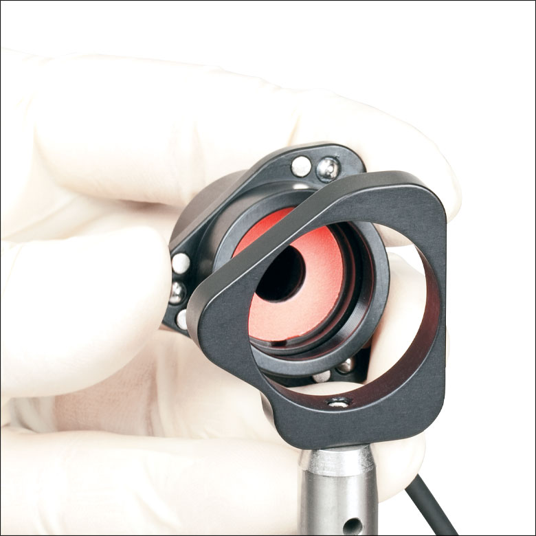 The APC adapters have two dimples in the front surface that allow them to be tightened with the SPW909 or SPW801 spanner wrench. The dimples do not go all the way through the disk so that the adapter can be used in light-tight applications when paired with SM1 lens tubes.