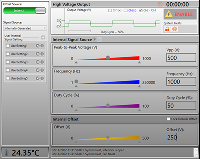 Pockel Cell DriverThe PCD1K Pockels cell driver includes a Windows®-based software package for computer control of the driver. - Software: The GUI for computer control of the PCD1K Pockels Cell Driver.